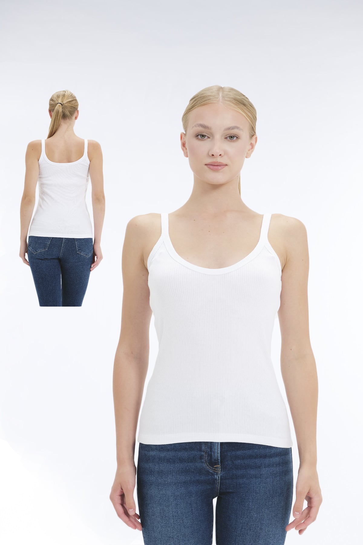 Kadın Pamuklu Kaşkorse Ribana Likralı Günlük Askılı Üst - 2381